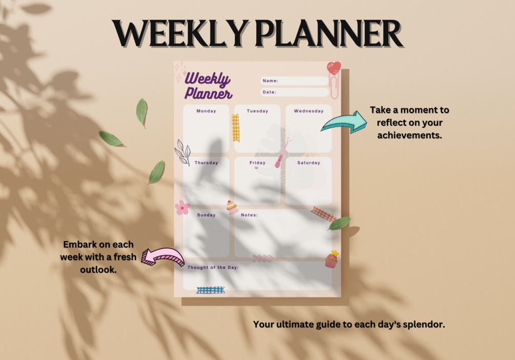 "Reimagine Your Weekly Routine with Our Digital Weekly Planner. Embrace the simplicity of efficient planning with our Minimalist Weekly Planner, meticulously designed for an organized life.